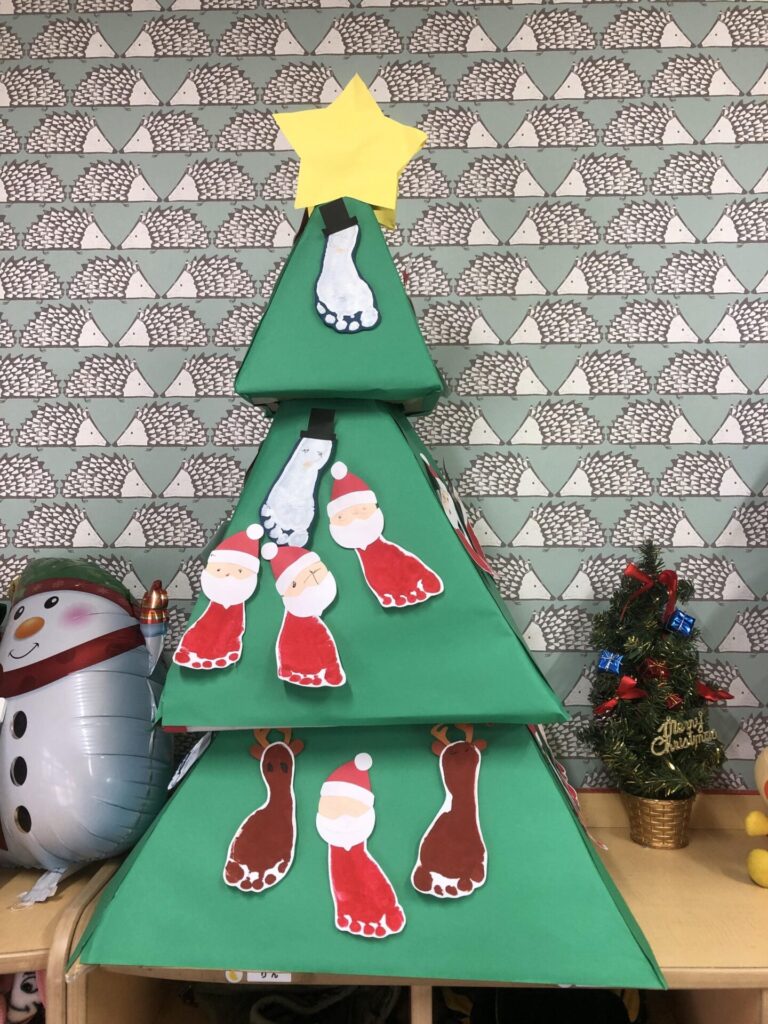 足形でサンタさんやトナカイを作って飾りつけしましたよ!