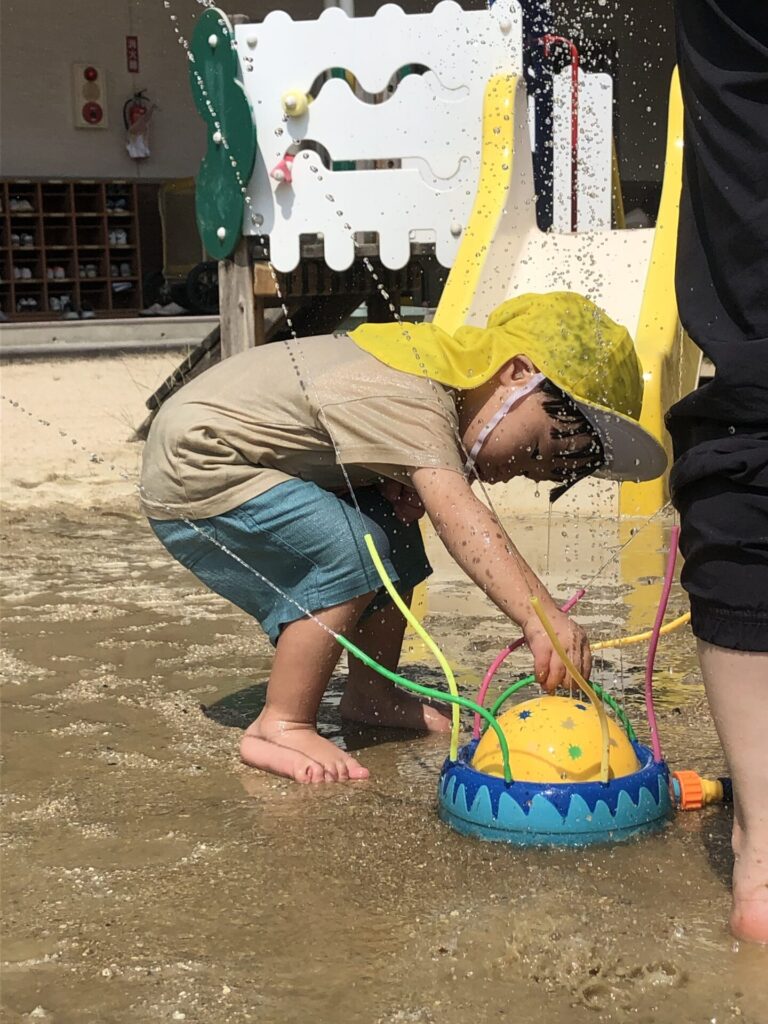 バシャバシャ!水のかけ合いっこをして遊んだよ!