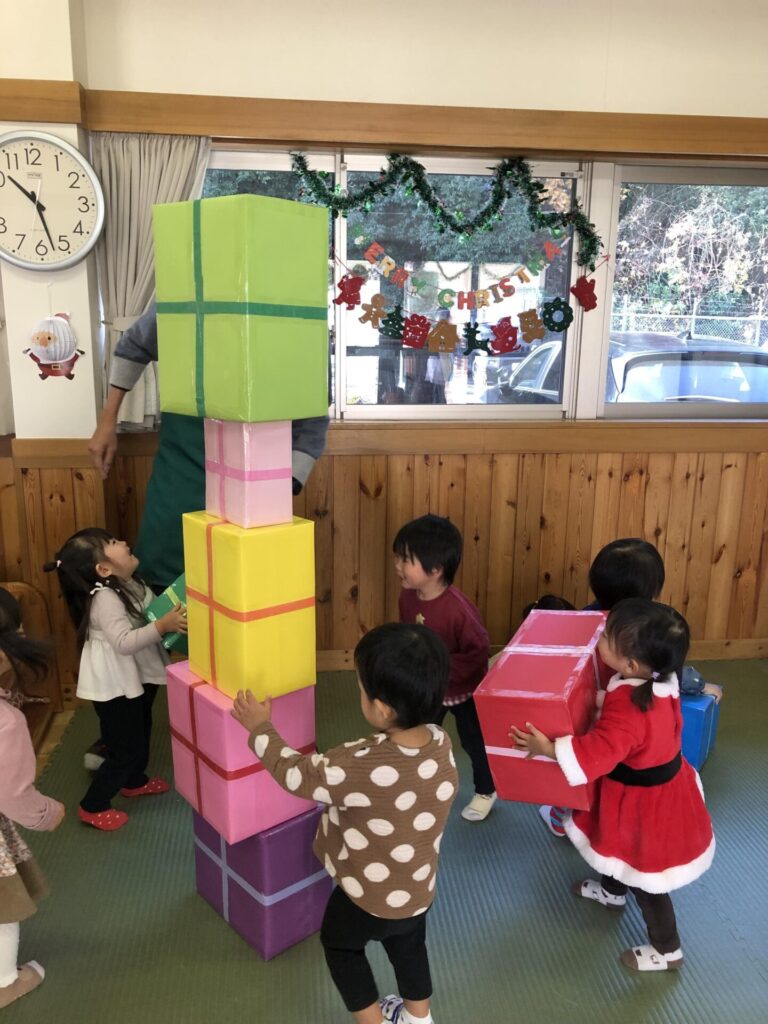 プレゼントの箱をみんなで協力してたか~く積み上げたよ!🎁