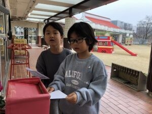 ほし組さんやつき組さんがプレゼントを持って歩いていたので、そら組さんも行ってみると