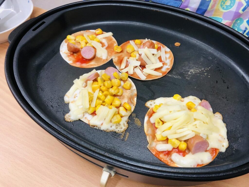「美味しいピザが作りたい!」みんな真剣に具材を乗せているよ♬