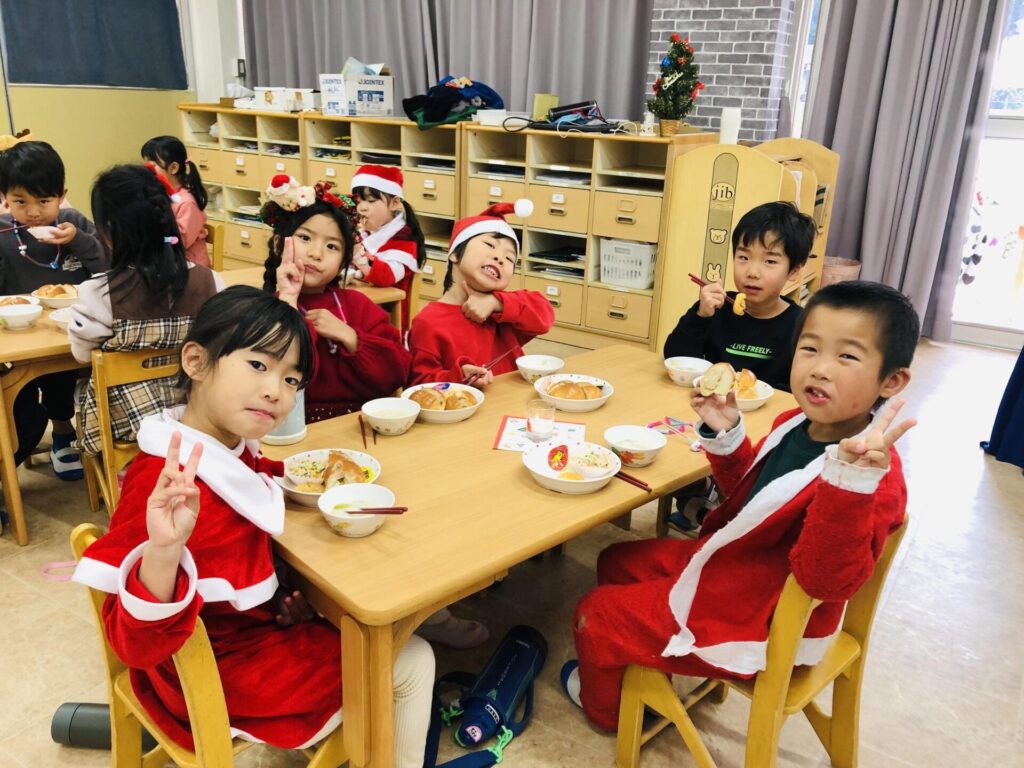 サンタさんにも会えてとっても嬉しかったね🎅美味しいご飯もお腹いっぱい食べて「今日はなんて楽しい日なんだ~‼」と話していましたよ。