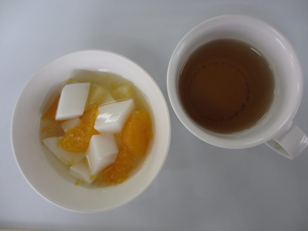 2026年01月29日 給食室から 1月29日(木) さつま芋のみそ汁🍠 甘くて美味しいさつま芋が入った美味しい味噌汁でした😊 ☆おひる☆ごはんぎせい豆腐付け合せさつま芋のみそ汁 ☆おやつ☆お茶杏仁豆腐