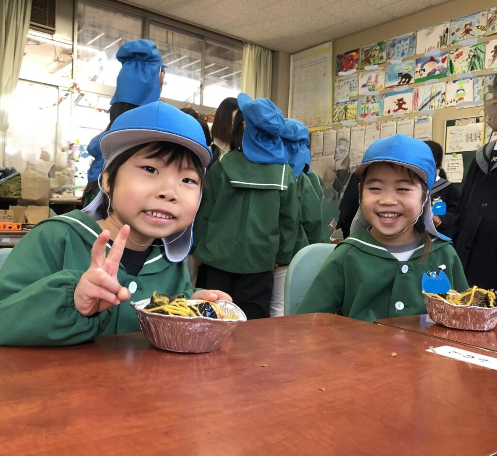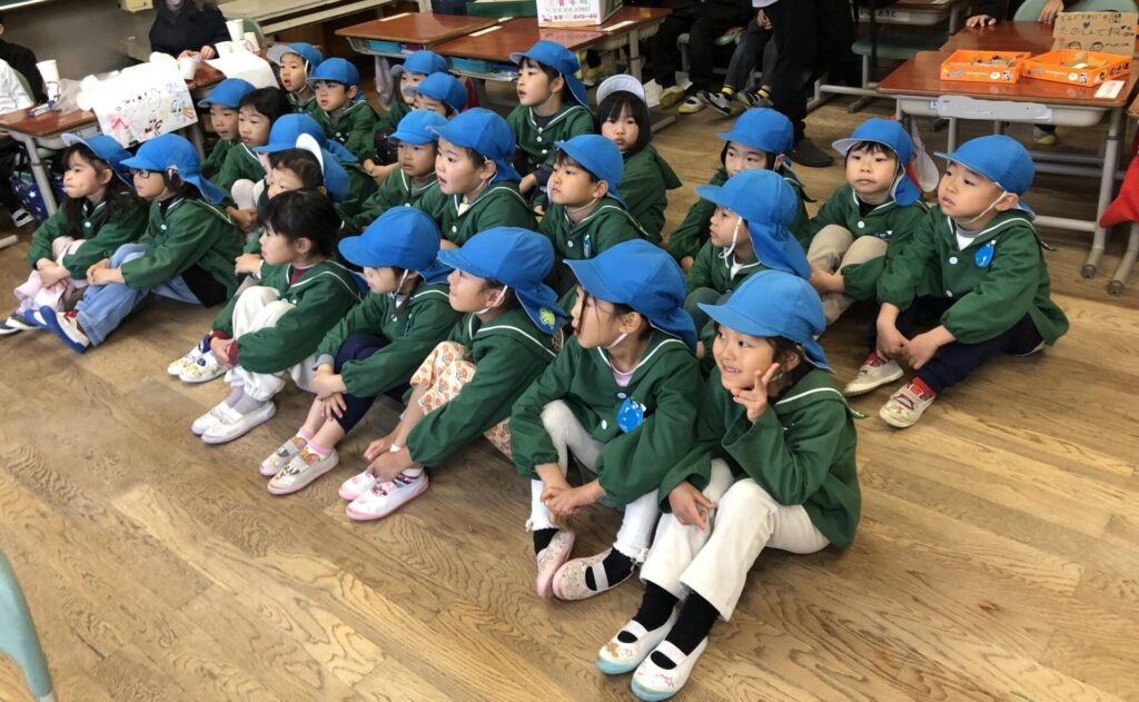 小学校の先生のお話を聞いている姿勢を褒めてもらったよ!「明日からでも小学校入学できます!」って言われて、ピシッと背筋が伸びたよね!