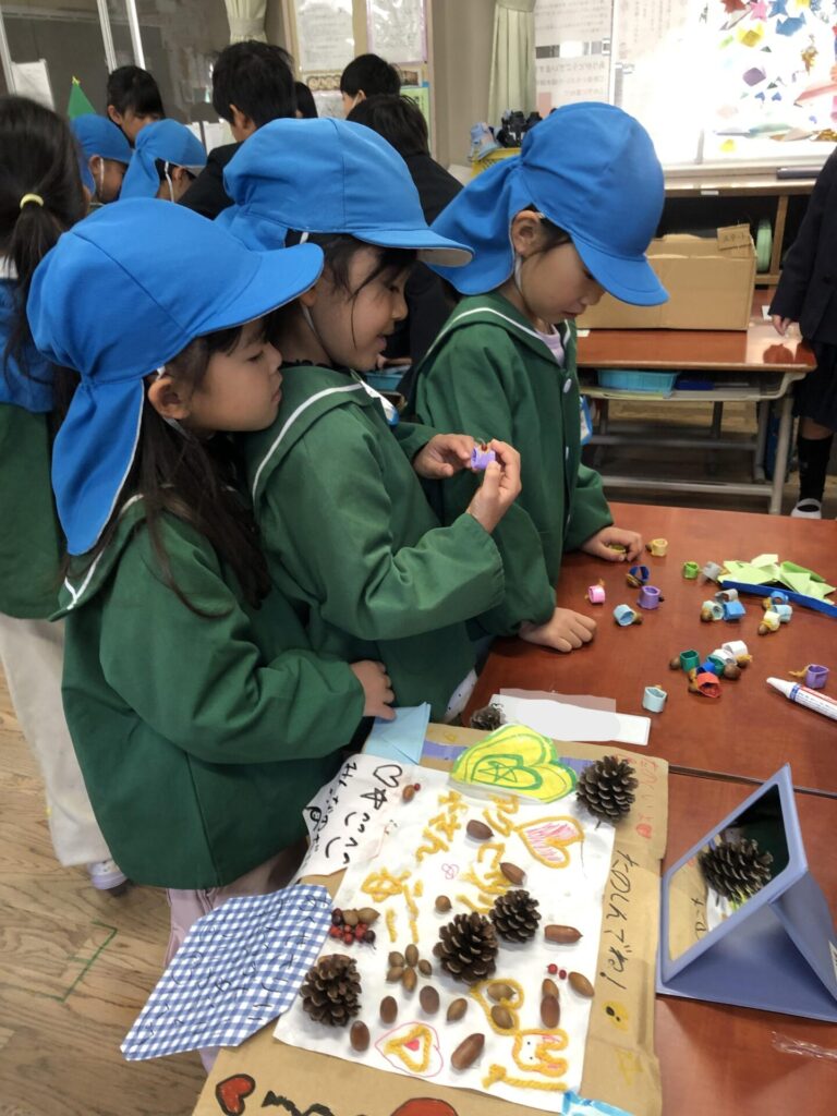 今回は秋の自然物を使った玩具でのお店屋さんごっこ🍂小学生のお兄さんやお姉さんたちが一生懸命に作ってくれた玩具で一緒に遊んだよ☺