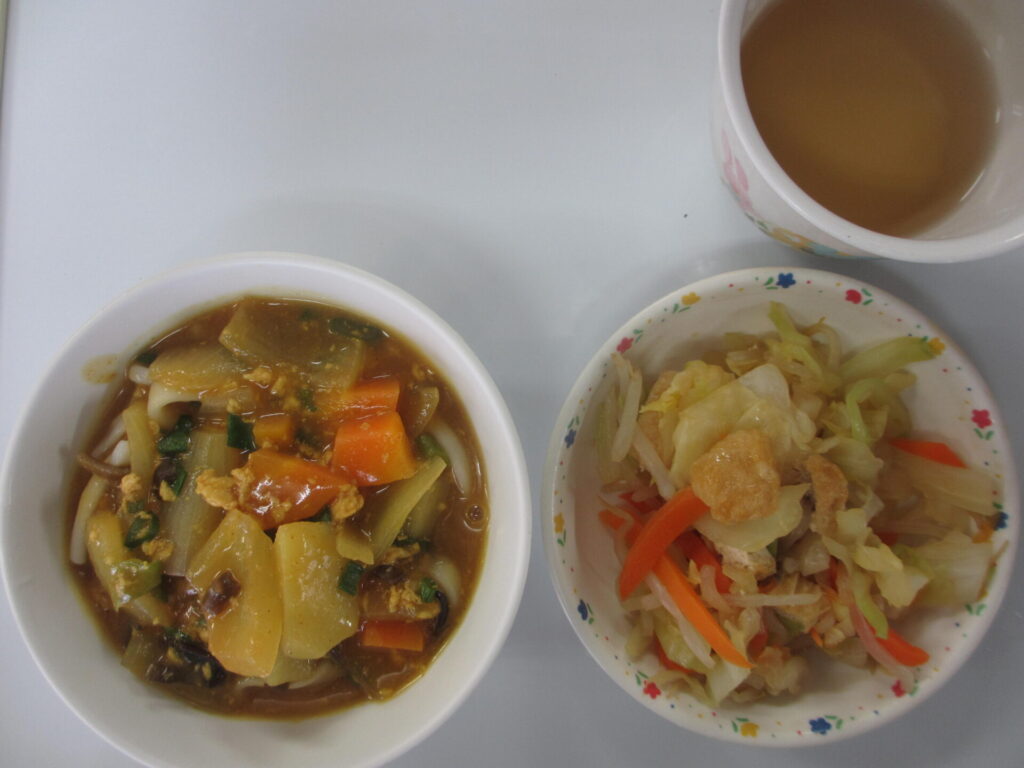 2026年02月07日 保育室から 2月7日(土) 千草和えとは… 今日は千草和えでした! 千草和えとは、細かく刻んだ色々な具材を、やさしい味付けで和えた和食の副菜のことです。 ☆おひる☆カレーうどん千草和え ☆おやつ☆牛乳ポテナゲ
