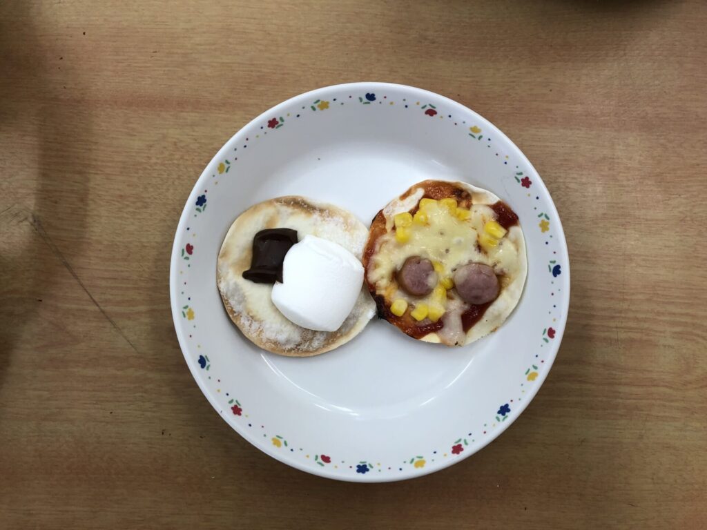 ケチャップを塗ったり、具材を乗せたりしながら、ピザ作りを楽しむ姿が見られましたよ😊