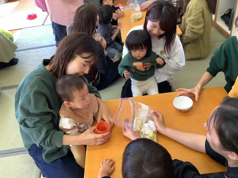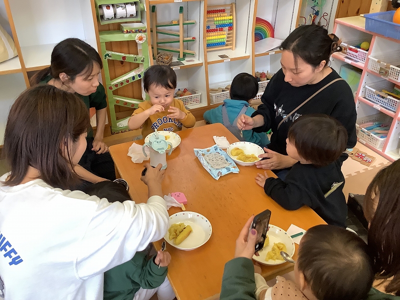 お芋をつぶしたら、砂糖や牛乳を入れて…