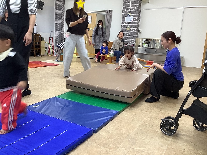 四つん這いになったりと平均台の一本橋にチャレンジ!