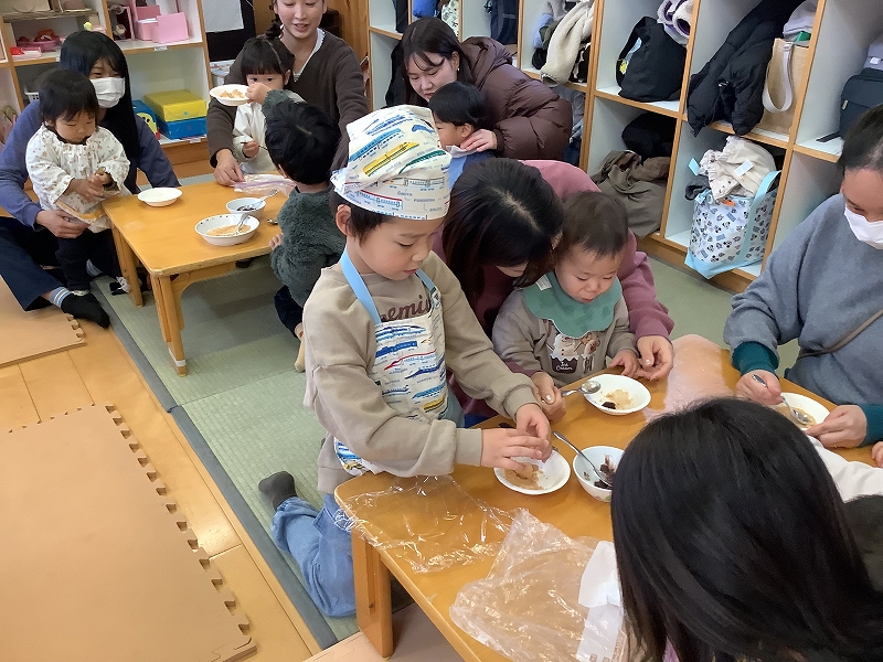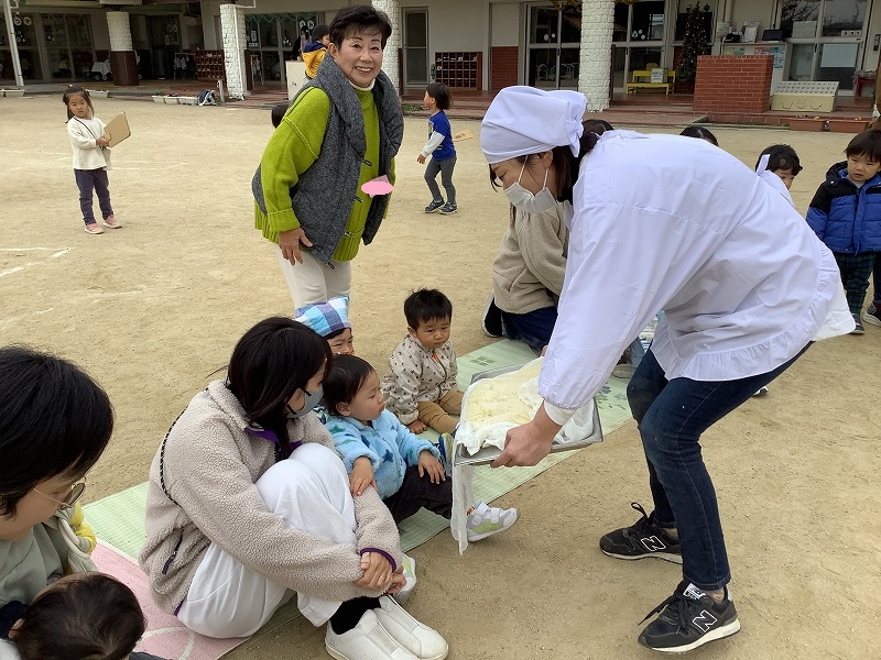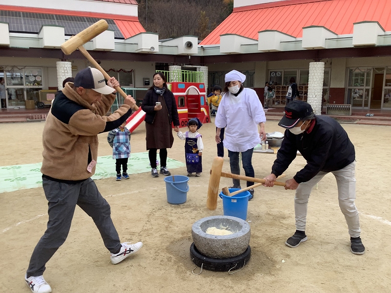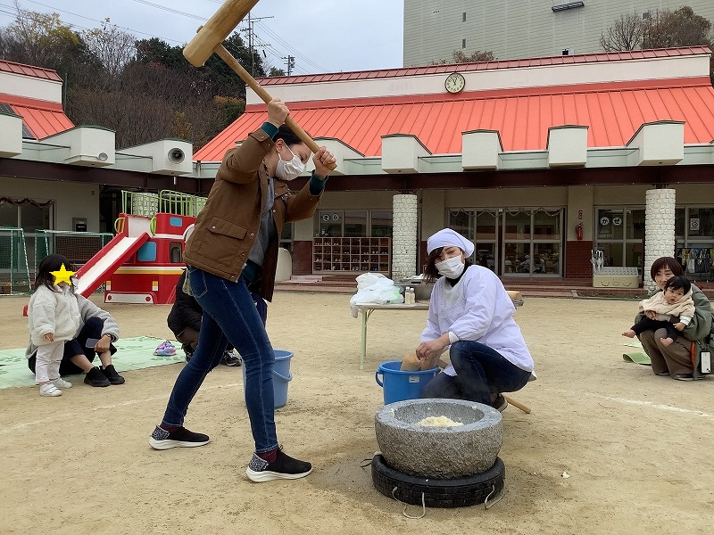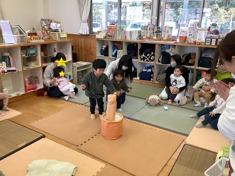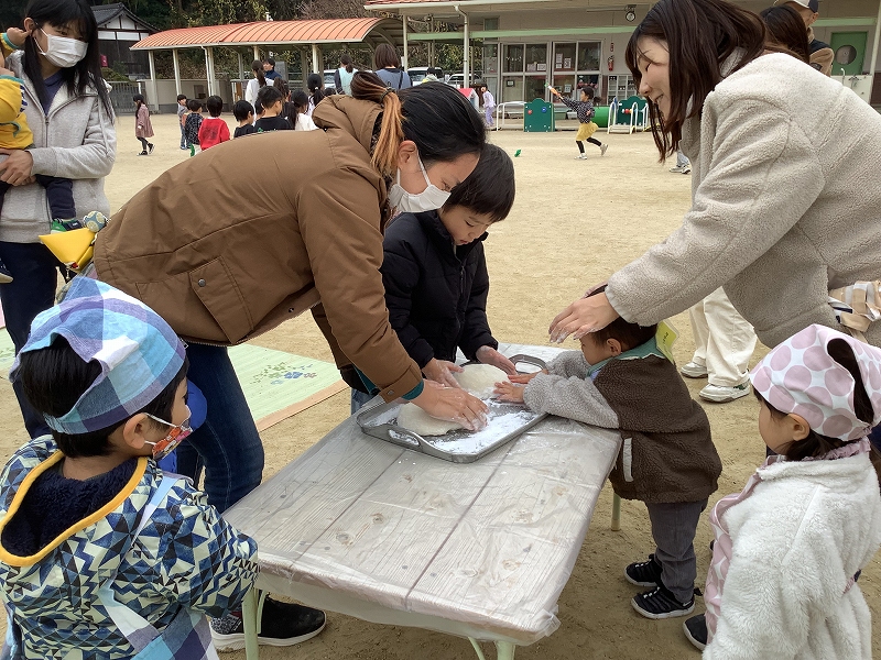 子どもたちもはりきって ぺったんこ! ぺったんこ!