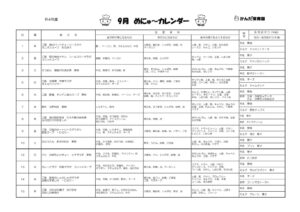 2022年9月 めにゅ〜カレンダー