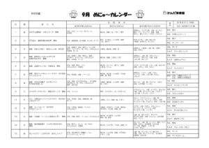 2023年9月 めにゅ〜カレンダー