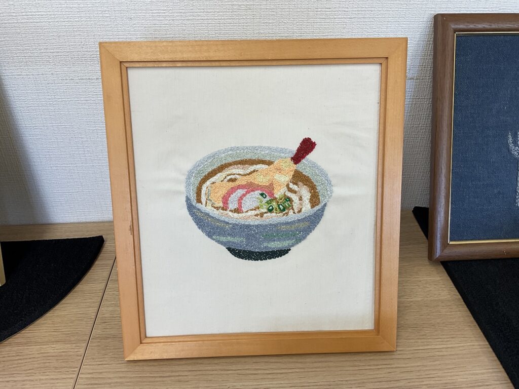 展示や刺しゅうの作品、商品レイアウト