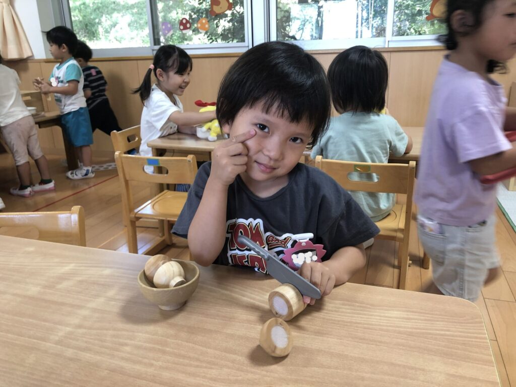 どうやらおままごとをしているようですよ♬ 店員さんとお客さんになって遊んでいるようです!