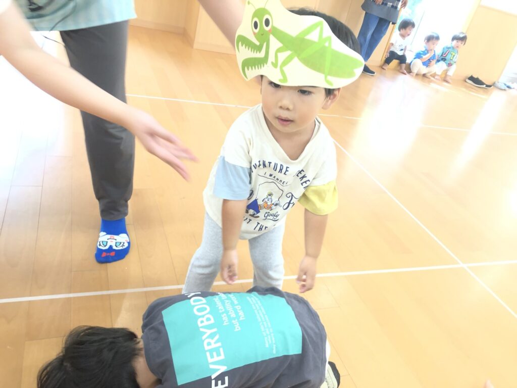 次はダンゴムシになって遊んでいたら、カマキリが登場💦