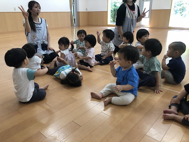 9月最終土曜日に乳児クラス(0歳児、1歳児、2歳児)で親子参観はっぴょう会がありました。