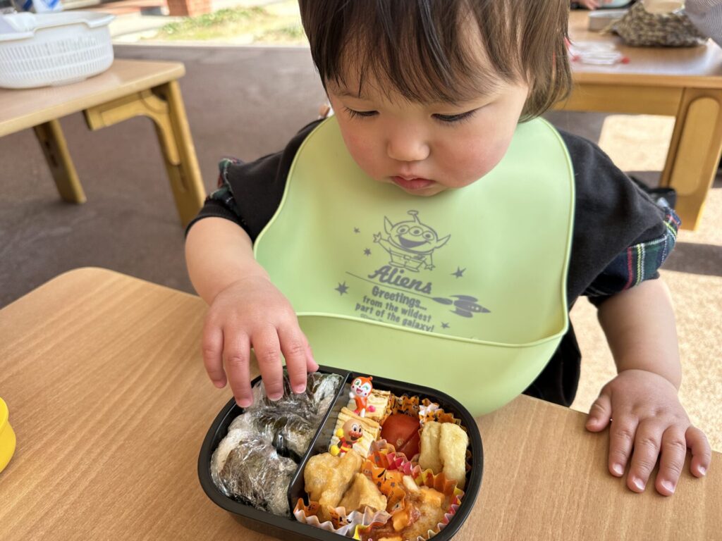 いっぱい遊んだ後は、保育園でお弁当タイム⏰お弁当も水筒も嬉しいね(^^♪