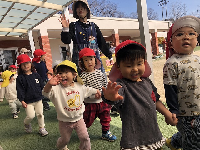1、2歳児で手を繋いで、園の近くのすずめ池公園にお出かけしました♪少し前まで、他のクラスのお友達と手を繋ぐことにまだ緊張や不安な気持ちが出ていましたが