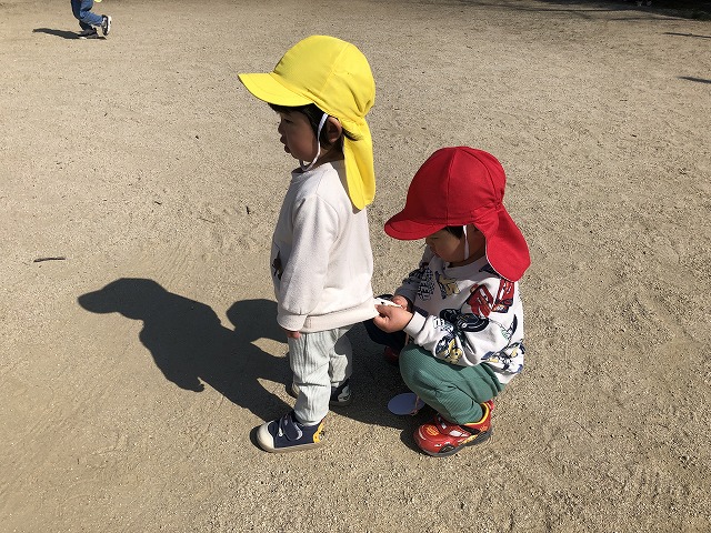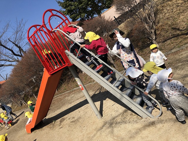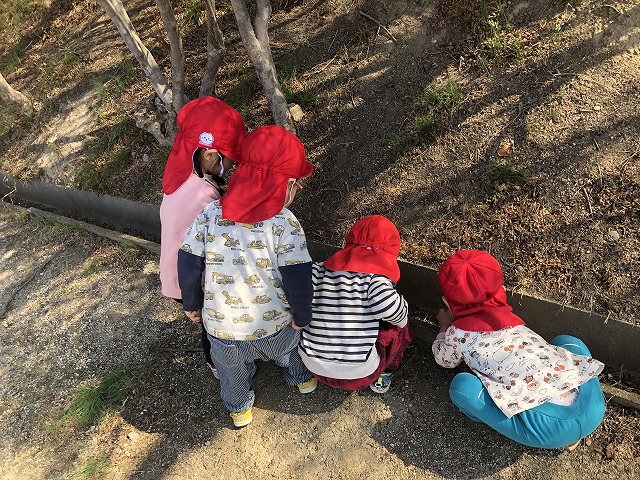いってらっしゃ~い👋公園に到着すると、滑り台やダンゴムシ探し、追いかけっこなど思い思いにのびのびと過ごしました。大きいお友達が小さいお友達のお世話する優しい姿もありました♡
