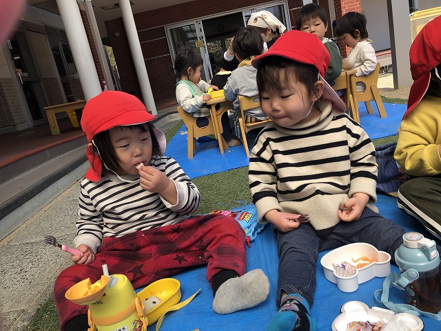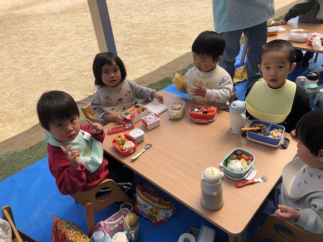 お友達と一緒にお家の方が作ってくれたお弁当をほおばりました。
