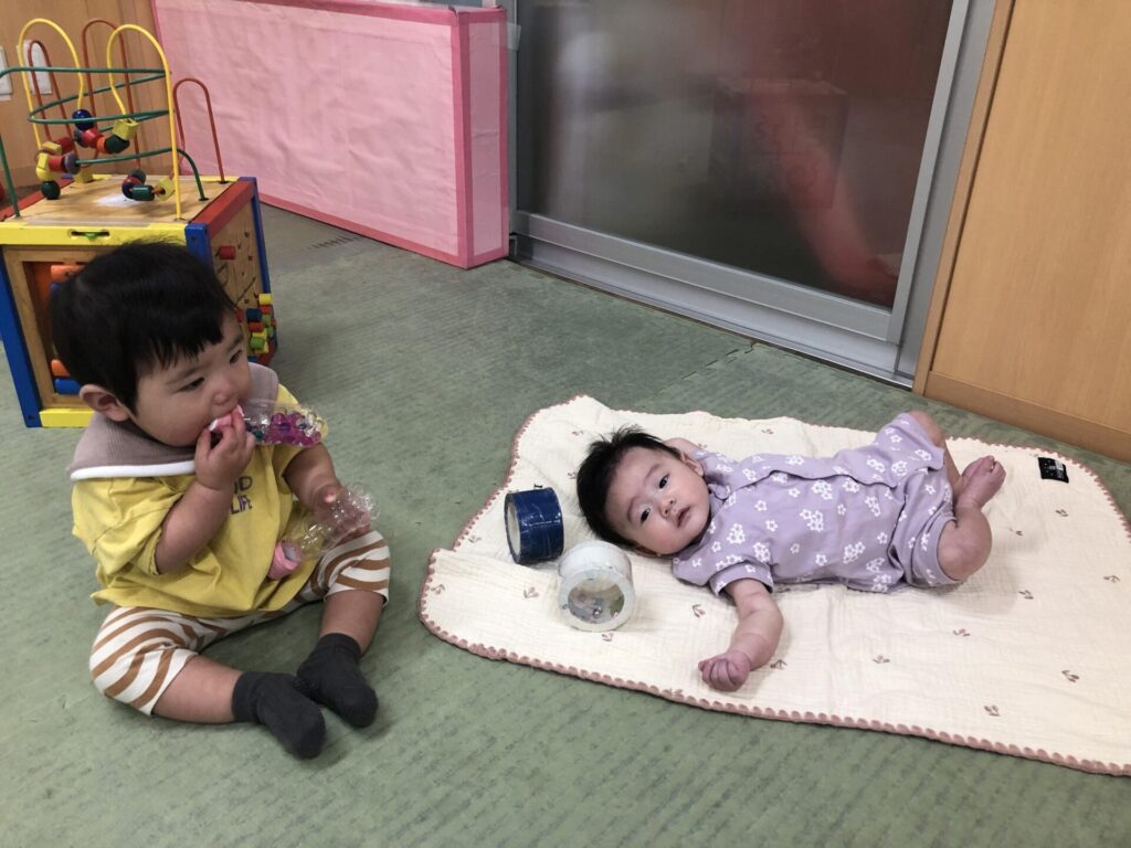 お友だちの動きが気になるようで、ハイハイで移動するお友だちをじっと目で追ったり、