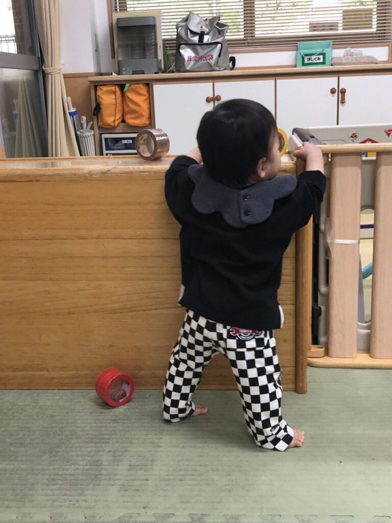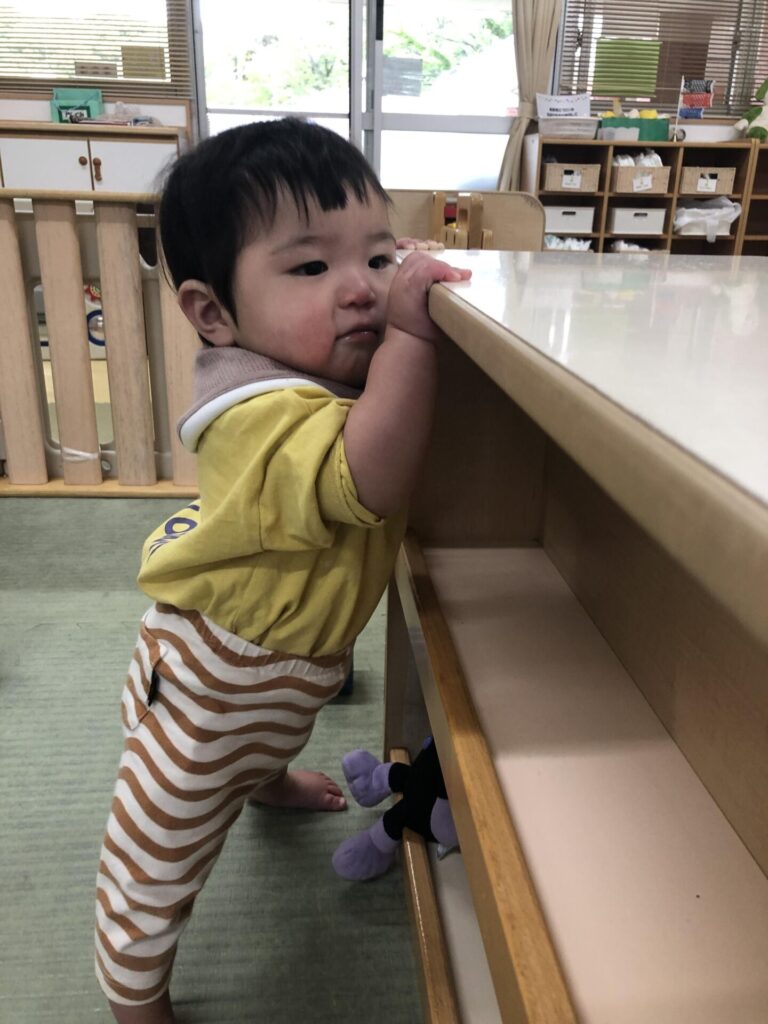 棚や壁に手をかけて「よいしょ!」と立ち上がる姿が増えてきました。